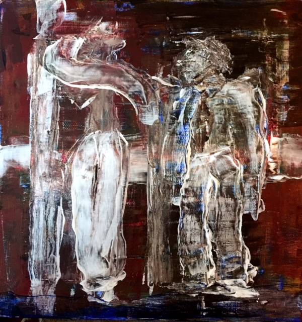 Sommige mensen zien een januskop in het linker figuur. De tweede kop is op de schouder, heeft een lange sik en ontblote tanden en kijkt nogal grimmig naar de vogel.