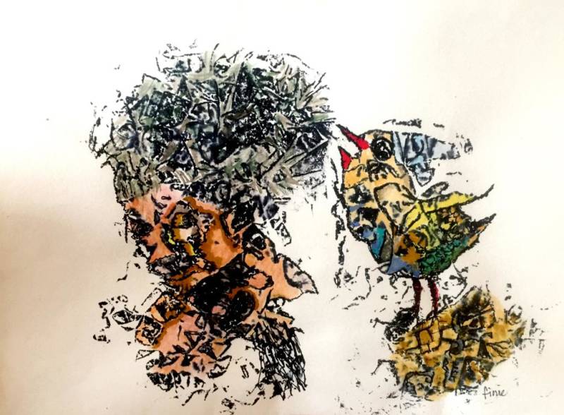 Monoprint van aquarelkrijt
